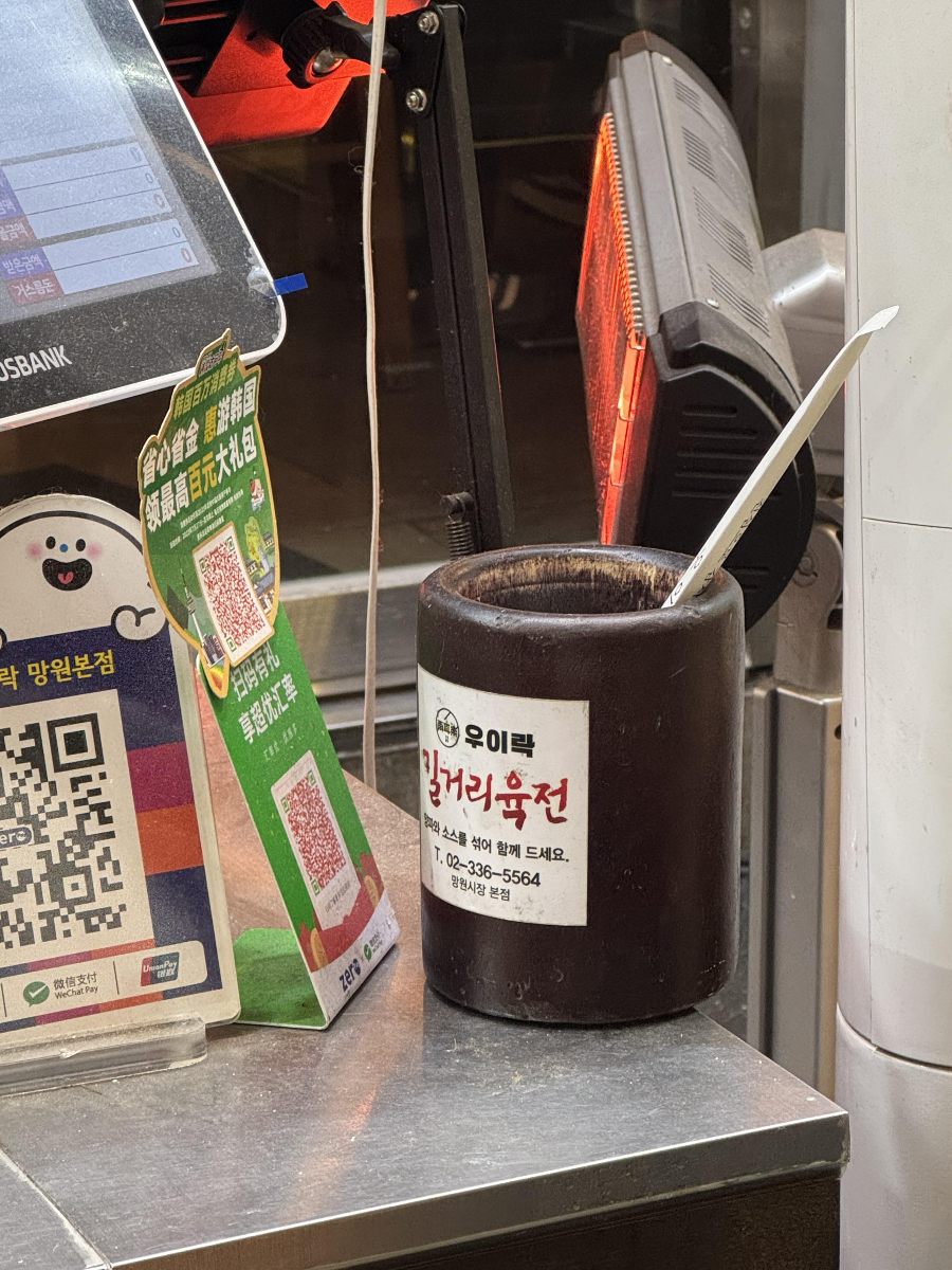 여기는 망원 시장 안에 있는 우이락 망원점입니다. "빗소리에 즐겁다" ㅎㅎ전 + 튀김을 전문으로 하는 곳입니다.